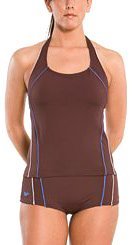 Speedo equals better fit, performance, quality and technical innovation! But we are also known for our relaxed lifestyle swimwear for the beach and beyond. This Spliced Halter Tankini with boy leg looks fantastic on. It is made of Speedo's exclusive Sculpt fabric that will slim you down and not make you feel confined like other shaping suits. It features feathered edged cups for a more natural look and feel with great support. It is a contemporary cut for the active fashionable woman.